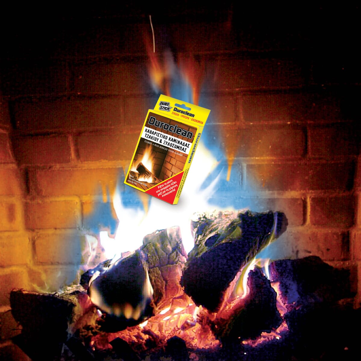 Ειδικό καθαριστικό σε μορφή σκόνης, για τον καθαρισμό υπολειμμάτων καπνιάς που συσσωρεύονται στα τοιχώματα καμινάδων και μπουριών. Η μέγιστη θερμική απόδοση και η καλή λειτουργία του τζακιού και της ξυλόσομπας επιτυγχάνεται με τον επιμελή καθαρισμό της καμινάδας. Αυτό διασφαλίζεται με τη χρήση του DUROCLEAN, χωρίς τη δική μας επίπονη προσπάθεια ή τη βοήθεια ειδικού τεχνίτη, σε ελάχιστο χρόνο, εύκολα και οικονομικά.
