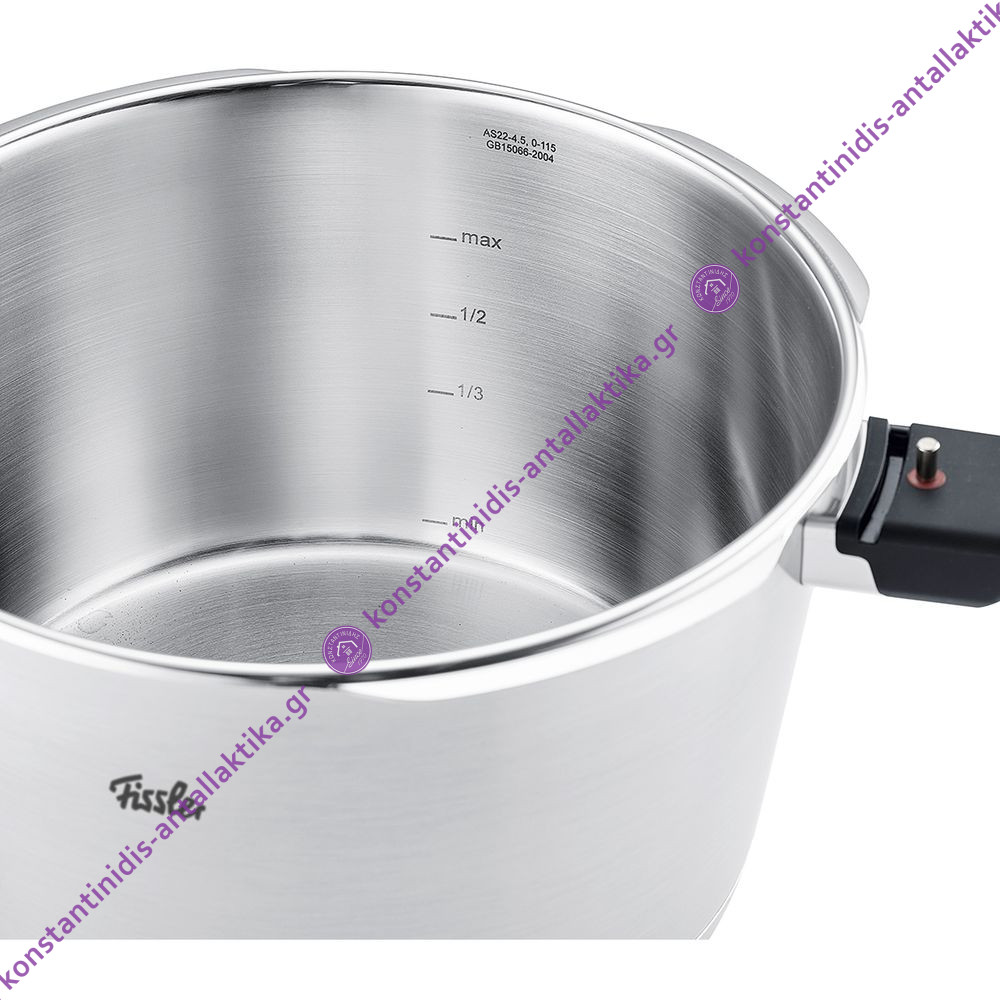 Η χύτρα Fissler διαθέτει ενδείξεις min και max για να υπολογίζεις με ακρίβεια την απαραίτητη ποσότητα υγρών κατά το μαγείρεμα